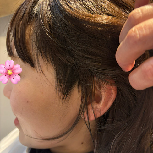 ・もみあげが見えないように顔周りの髪を多めに作る